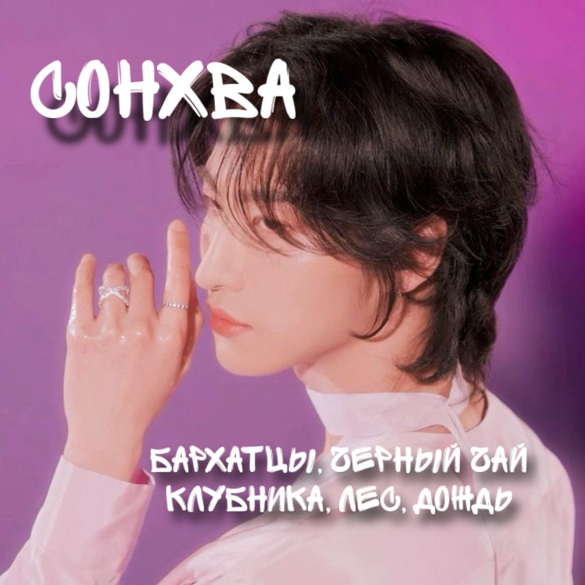 Описание: Аромат отражает характер Сонхва и вне сцены, и образ на сцене. Вне сцены Сонхва очень любит чистоту, порядок, Диснеевские мультики(скиттлс как ассоциация к яркости), бархатцы(цветы, отдающие небольшой пряностью), Тэйлор Свифт(сахарная вата). Ноты сердца - то, что любит Сонхва: Лондон(черный чай с молоком) и клубничное молоко.