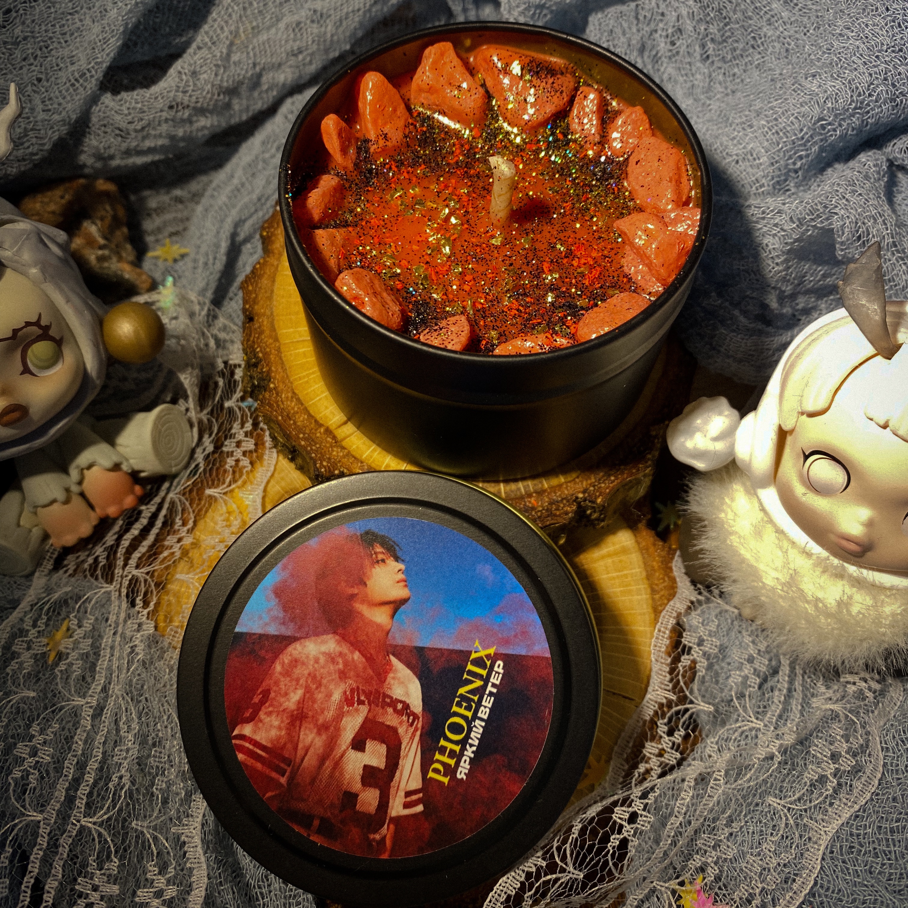 Описание: Мне хотелось создать необычное сочетание, символизирующее фениксов и перерождение. Сначала думала об оранжево-красных оттенках и цитрусах, но это казалось таким банальным, если опираться на песню... Поэтому этот аромат- необычный эксперимент, в котором за основу взяты отсылки к самому фениксу: зарождение из пепла и празднование его рождения с тортом. Аромат получился интересным, но очень носибельным: в боксе как раз не хватало сладкого аромата, а "Phoenix" как раз со сладкими нотами в основе. Раскрывается по-разному: иногда из сладости уходит в замшево-дымные акценты, иногда акцент перетягивается с пепла на сладость.