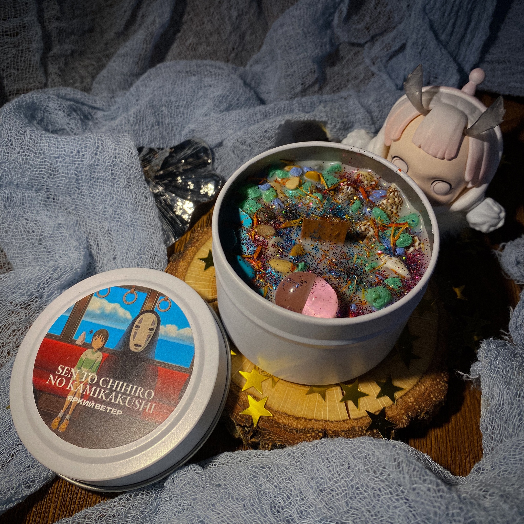 Аромат о любви к семье, к людям в целом, о взаимопомощи, чувстве долга и первой чистой любви. В аромате множество отсылок к аниме(героев очень много, многим хотелось уделить внимание), поэтому аромат многогранный, но в целом уютный, теплый, приободряющий, "подставляющий свое плечо" в сложные минуты и говорящий: из любой ситуации есть выход. Йогурт с садовой мятой - две цветовые отсылки к Хаку(белый и мятный цвета отсылают нас не только визуально к дракону, но и по звучанию йогурт-нежность, а мята - свежесть и ветер). Гуава и персик - отсылка к цвету одежды и характеру Тихиро и ее наставницы(яркий, напористый, но открытый и принимающий в свои объятия). В аниме было довольно много цветов, но так как мне не хотелось делать аромат именно цветочным, то я продолжила тему нежности и водных акцентов через цветочные ноты фрезии, лотоса и нежного ириса. Древесина и старые книги - отсылка к дедушке, который помогал и заботился о Тихиро, хотя и бурчал. Океан - им буквально пронизано все аниме: не только как путь, по которому проложена железная дорога, но еще и как отсылка к слезам осознания между Хаку и Тихиро, когда они вспоминают историю знакомства.
