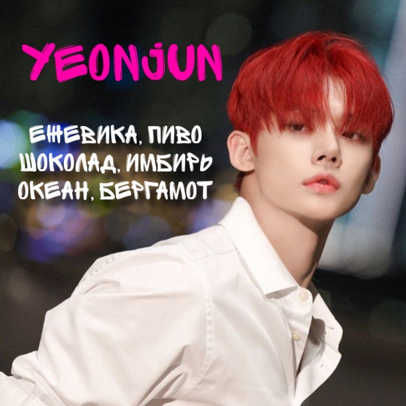 Описание: В основе аромата отсылка в виде нот к его любимым парфюмам: Blue de Chanel и Jo Malone Wood Sage & Sea Salt. Вместе с древесно-мужественной основой и сильный образом на сцене, вне сцены Енджун довольно мягкий, сентиментальный и трудолюбивый парень. Он любит корги, фильм «Стажер», фиолетовый цвет, шоколадное молоко, дедовские шутки и моду. Еще он любит пиво, это тоже отражено в аромате. Аромат в основе мужественный, благородный, с сильной базой, но не тяжелый, однако скрывает в себе яркие ноты(шоколад, ежевика), нежность и сентиментальность(жасмин, океан). Енджун любит необычные сочетания, поэтому аромат полностью отражение необычных сочетаний в одном флаконе. В аромате хочется разбираться и открывать для себя новые и новые грани, как Енджун раскрывается для нас с каждым годом все больше и больше.